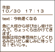 「今度大将呼ばれた時には“旦那の晩飯作んないといけないんでお断りします”ってちゃーんと言っとくから!」