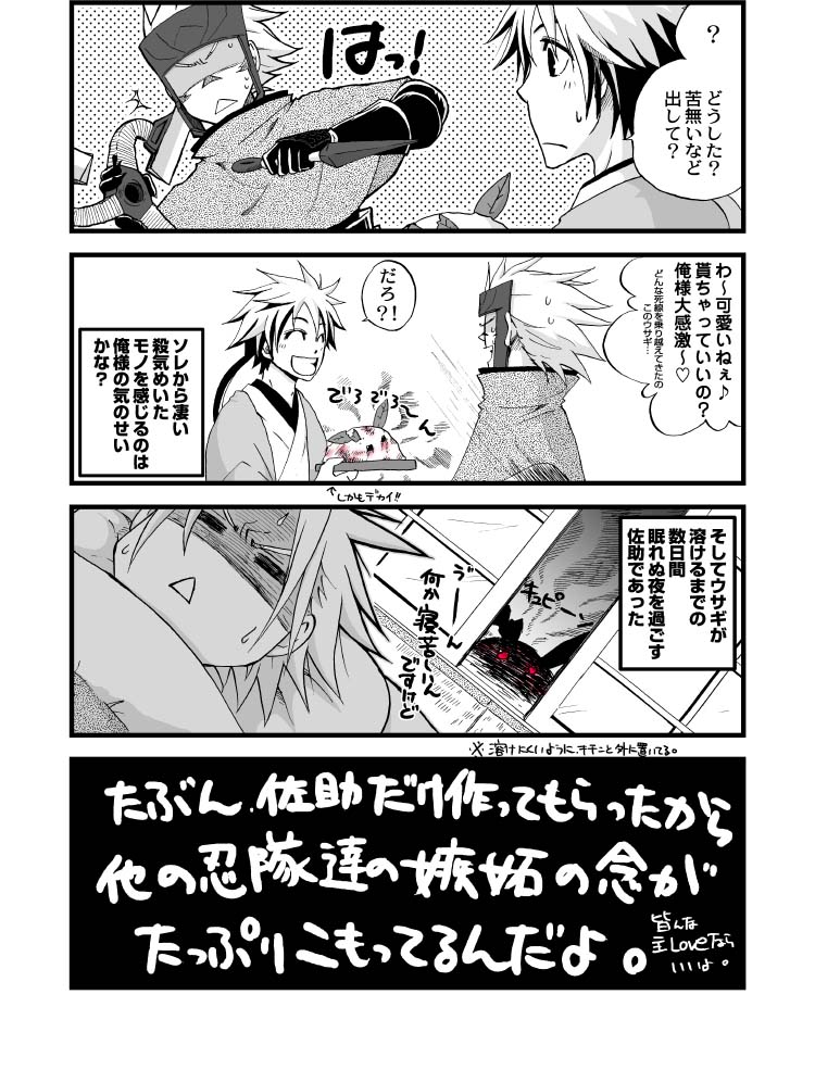 そしてそして、こんな朱染めの雪うさぎでも『幸村作』ってだけで忍隊のみんなが嫉妬してるのが可愛い。