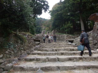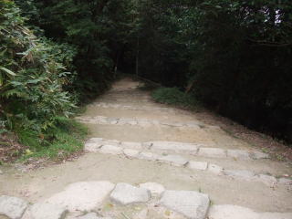 ちょっと緩やかな勾配の石段(下り)なんですけど、一度加速したら止まれません。そして長い。
