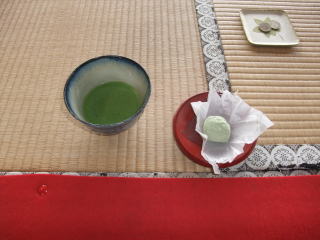 ちょっとした一服スペースもありまして、庭を眺めながらお抹茶と和菓子をいただけます。